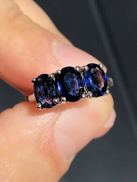 Striking Gems Natural 3ct Kyanite Trilogy Ring 9ct White Gold – size K