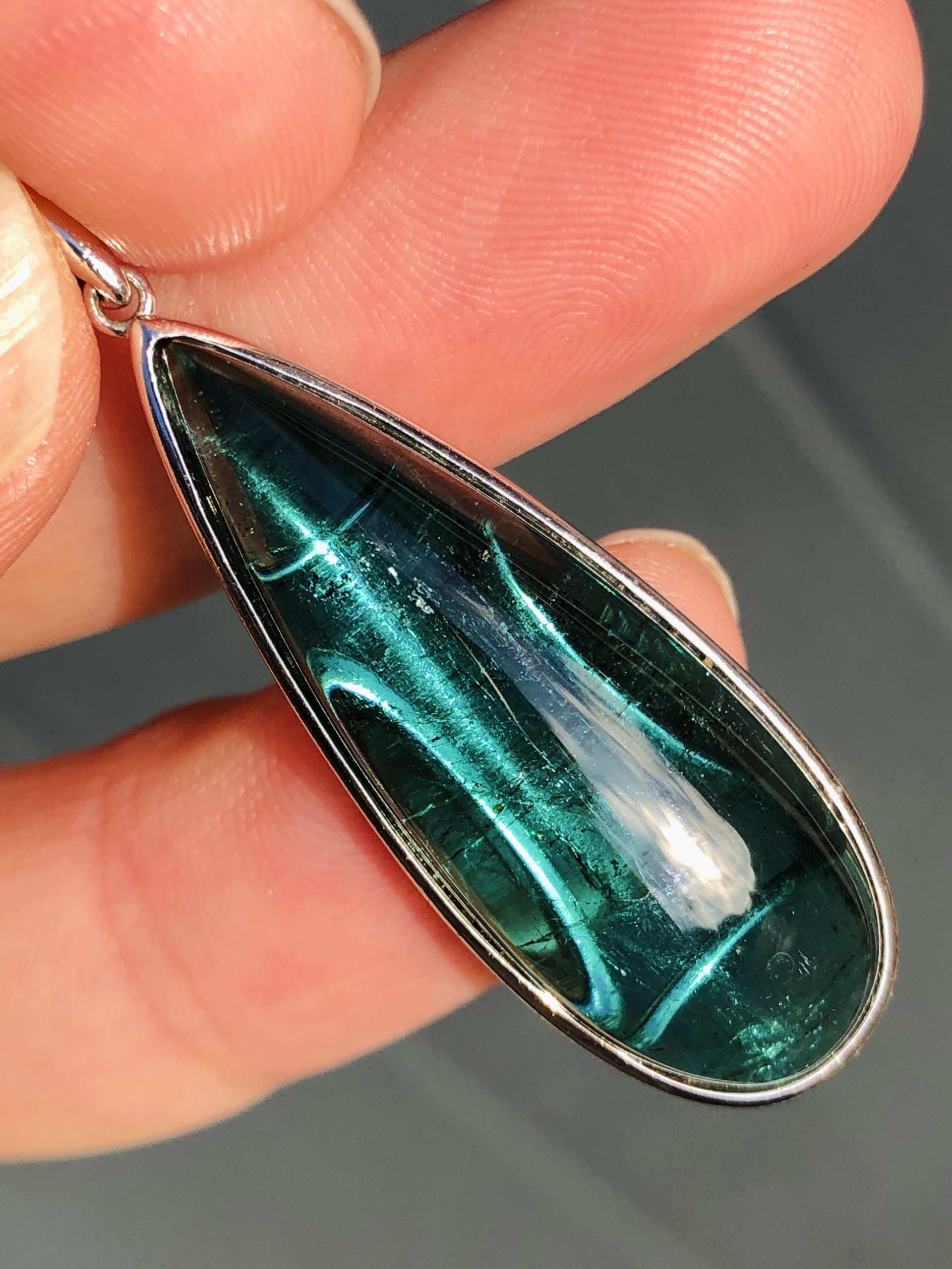 Striking Large natural approx 20ct Indicolite Tourmaline Drop Statement pendant 18ct Gold