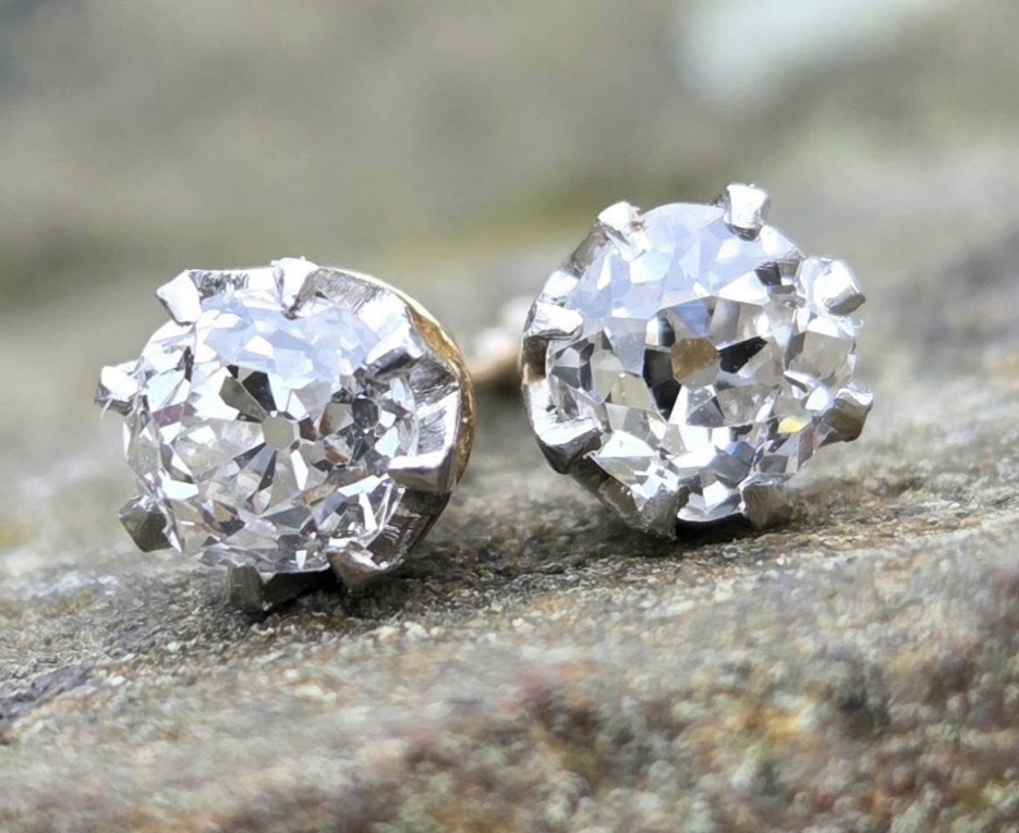 Stunning Antique Old cut Diamond stud gold earrings