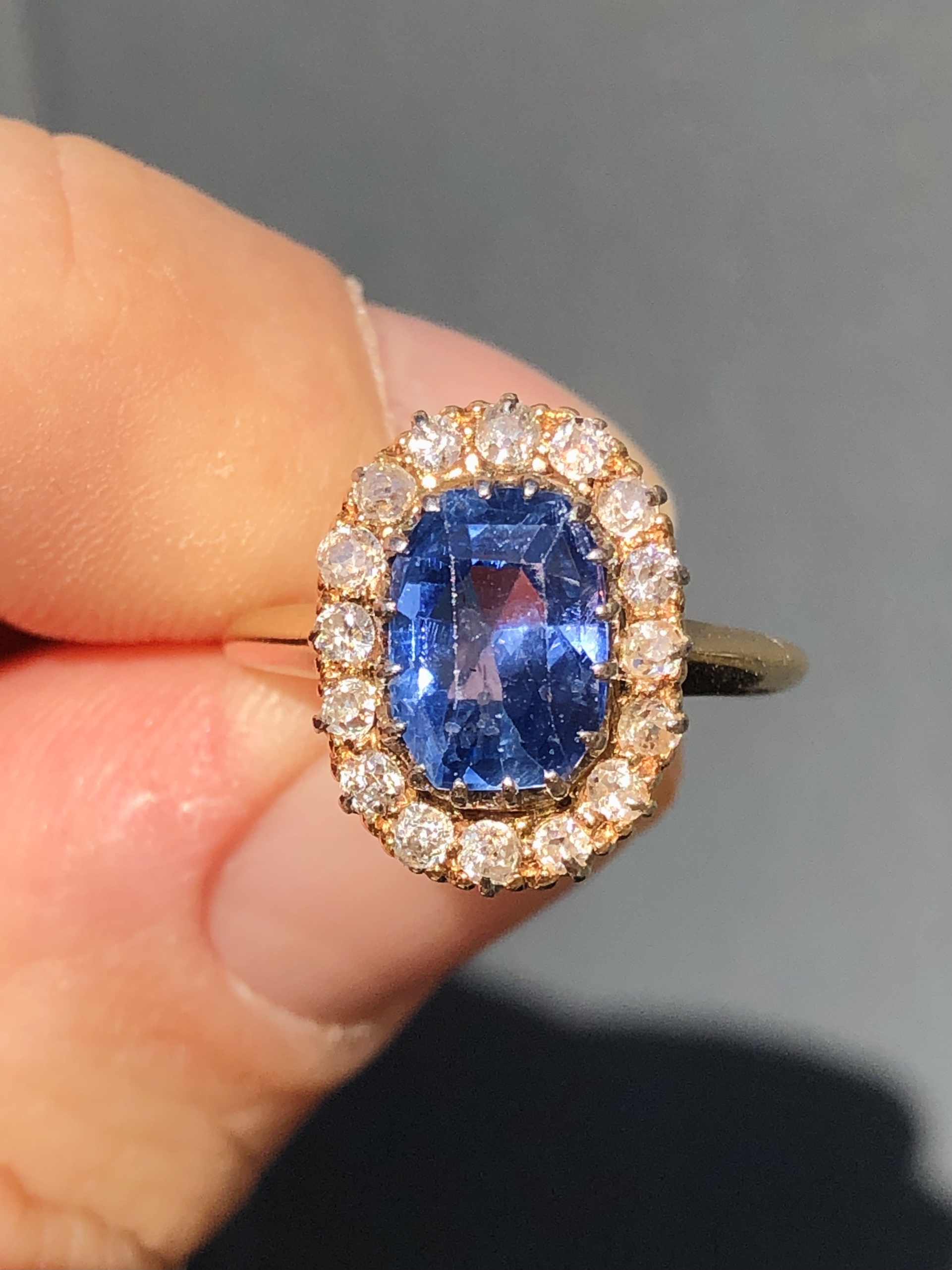 stunning antique victorian natural ceylon sapphire & old cut diamond ring 18ct Gold
