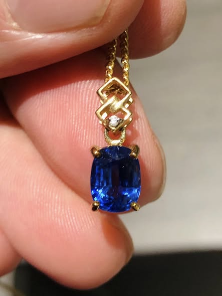 Stunning gems natural Kyanite & Diamond drop gold pendant 9ct yellow gold