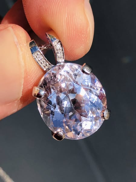 Stunning Old Gems Large Pale Pink Kunzite & Diamond Statement Pendant 9ct Gold