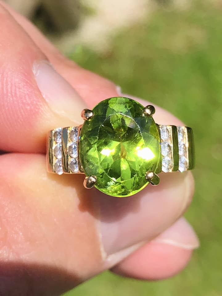 Stunning Old Gems Natural Paraiba Tourmaline & Diamond Ring 18ct Gold – Stunning Old Gems Burma Peridot & Diamond Ring 18ct Gold – sizing for Paraiba P & half