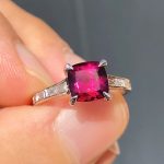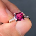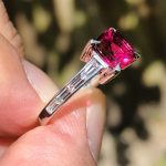 The stone has been perfectly cut and set and bursts with life the glow you have from this natural wonder really is quite something. In sunlight especially this stone sparkles like a giant red diamond on the hand. Finished beautifully with a collection of eye clean ice white baguette cut diamonds that are set into the shoulders. I just adore this ring it is so comfortable to wear and enjoy and will have you staring down at your fingers for hours on end.